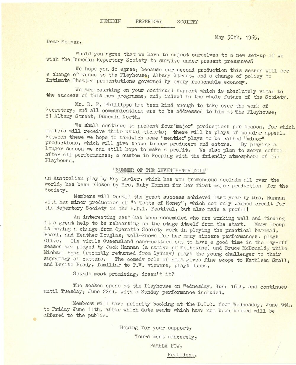 Dunedin Public Libraries (11th Oct 2022). Dunedin Repertory Society form letters to members. In Website Dunedin Public Libraries. Retrieved 19th Mar 2026 10:31, from https://dunedin.recollect.co.nz/nodes/view/216243