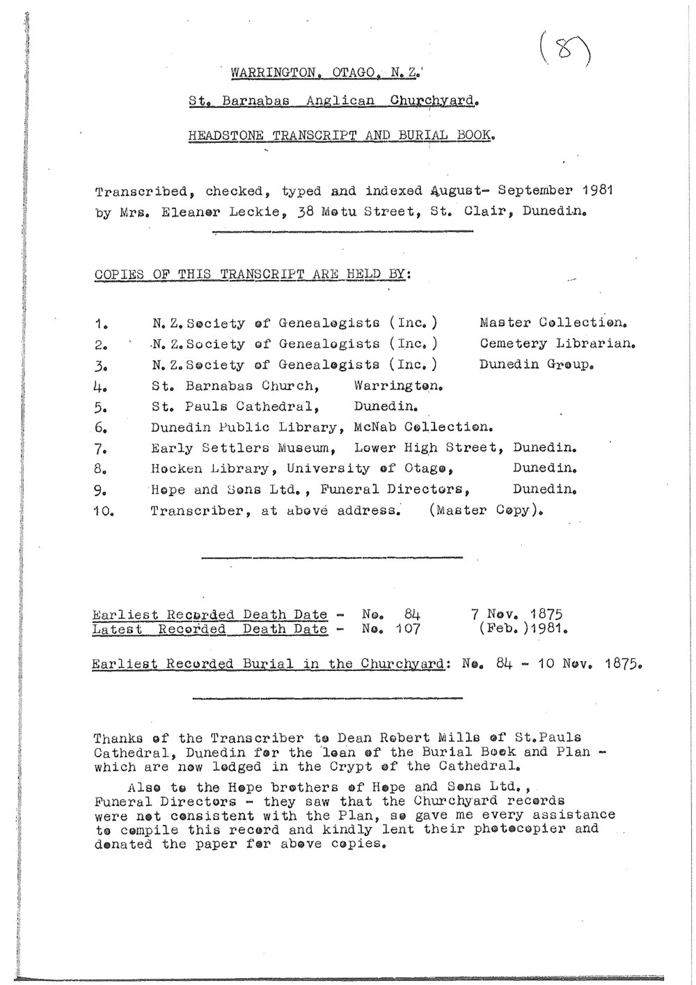 Dunedin Public Libraries (21st Feb 2023). Headstone Transcript and Burial Book. In Website Dunedin Public Libraries. Retrieved 22nd Mar 2026 19:19, from https://dunedin.recollect.co.nz/nodes/view/217198