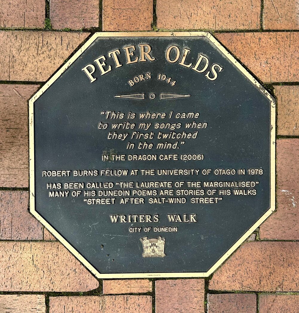 Dunedin Public Libraries (5th Feb 2024). Peter Olds Writers' walk plaque . In Website Dunedin Public Libraries. Retrieved 21st Mar 2026 21:16, from https://dunedin.recollect.co.nz/nodes/view/217903
