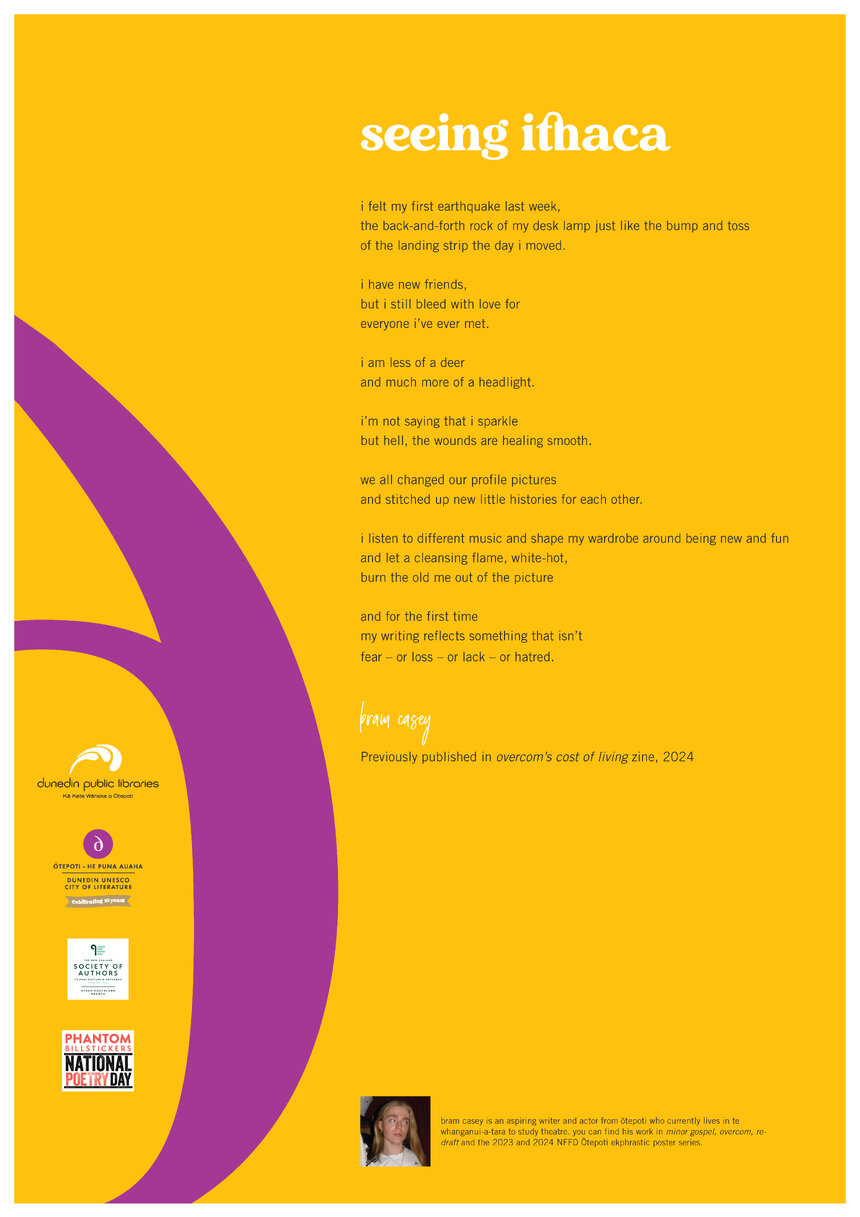 Dunedin Public Libraries (15th Jan 2025). bram casey-National Poetry Day Poem 2024. In Website Dunedin Public Libraries. Retrieved 21st Mar 2026 04:42, from https://dunedin.recollect.co.nz/nodes/view/218270