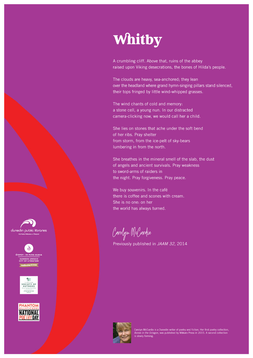 Dunedin Public Libraries (15th Jan 2025). Carolyn McCurdie-National Poetry Day Poem 2024. In Website Dunedin Public Libraries. Retrieved 21st Mar 2026 04:42, from https://dunedin.recollect.co.nz/nodes/view/218273