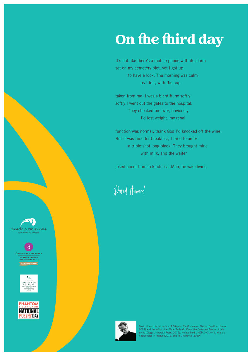 Dunedin Public Libraries (15th Jan 2025). David Howard-National Poetry Day Poem 2024. In Website Dunedin Public Libraries. Retrieved 21st Mar 2026 04:42, from https://dunedin.recollect.co.nz/nodes/view/218276