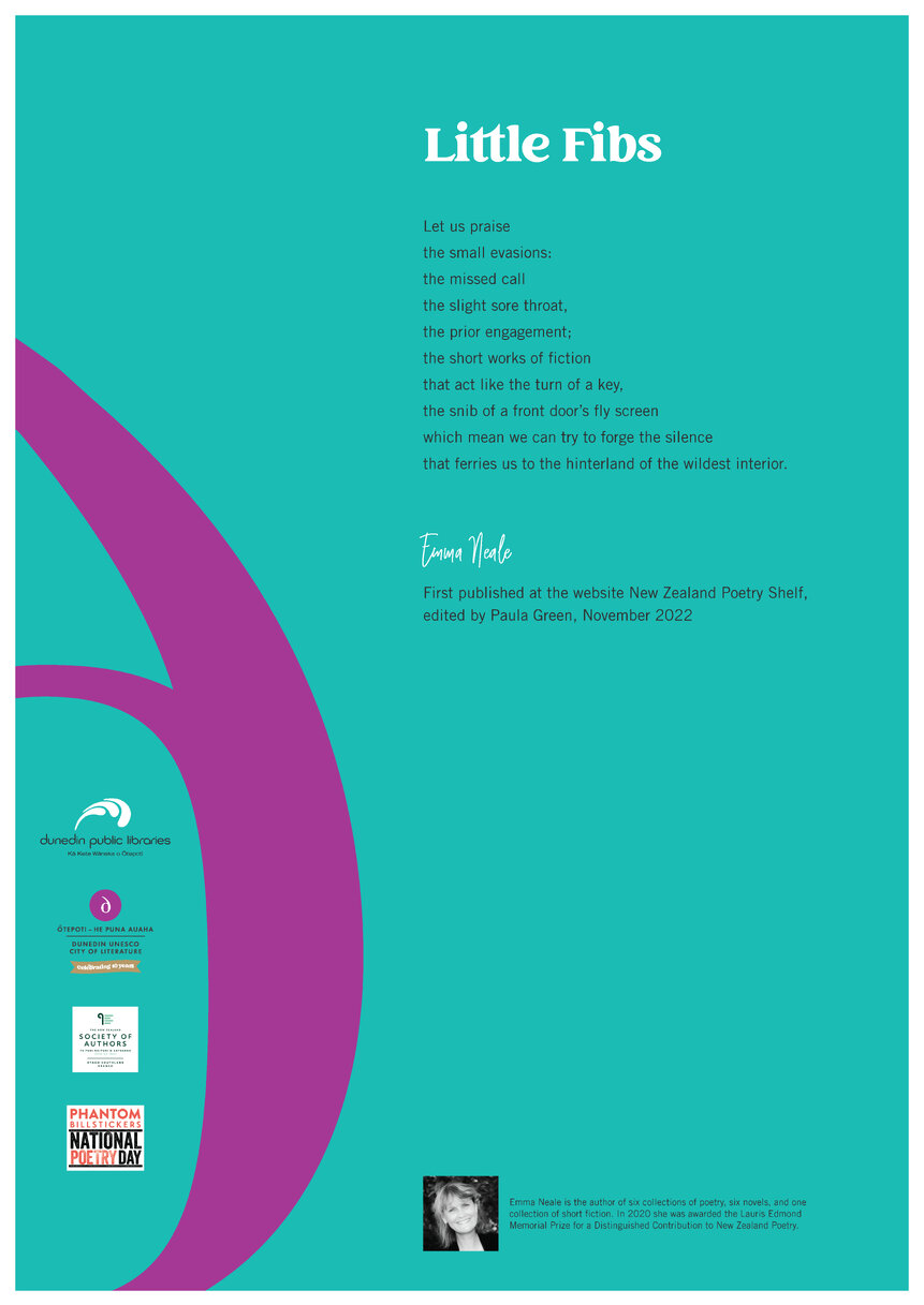 Dunedin Public Libraries (15th Jan 2025). Emma Neale-National Poetry Day Poem 2024. In Website Dunedin Public Libraries. Retrieved 21st Mar 2026 04:42, from https://dunedin.recollect.co.nz/nodes/view/218280