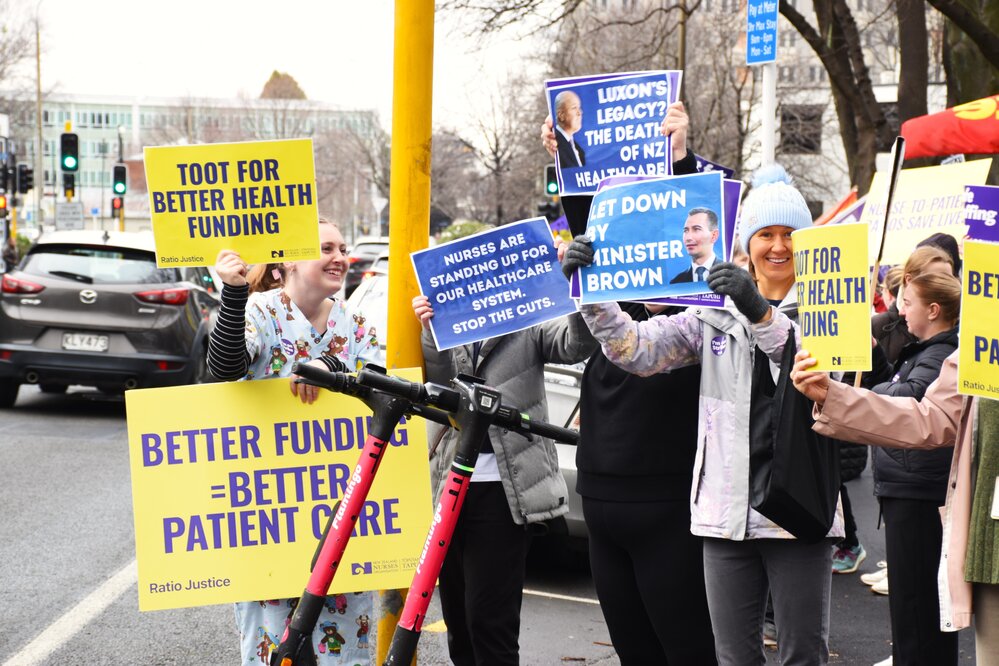New Zealand Nurses Organisation (NZNO) members on strike in Dunedin