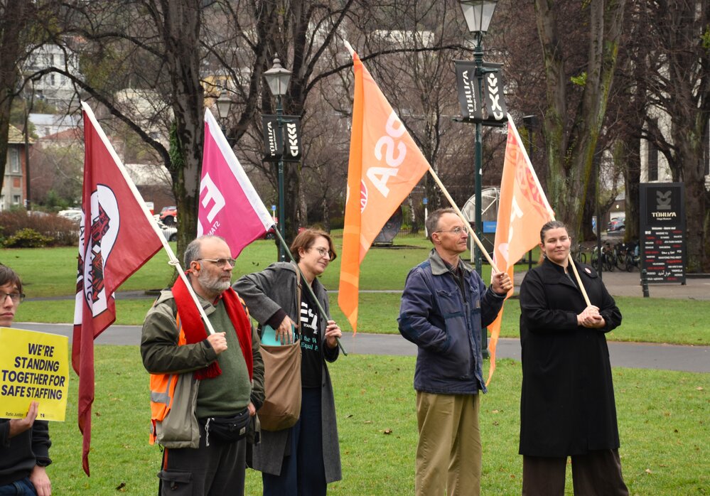 Dunedin Public Libraries (28th Oct 2025). Delegates from various unions standing in support of the nurses. In Website Dunedin Public Libraries. Retrieved 19th Mar 2026 05:20, from https://dunedin.recollect.co.nz/nodes/view/219455