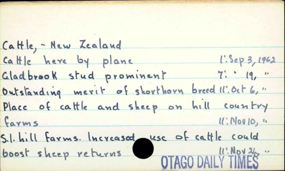 Dunedin Public Libraries (14th Mar 2019). Cattle - New Zealand. In Website Dunedin Public Libraries. Retrieved 27th Mar 2026 14:04, from https://dunedin.recollect.co.nz/nodes/view/23708