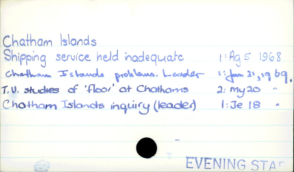 Dunedin Public Libraries (27th Mar 2019). Chatham Islands. In Website Dunedin Public Libraries. Retrieved 4th Apr 2026 15:07, from https://dunedin.recollect.co.nz/nodes/view/24648