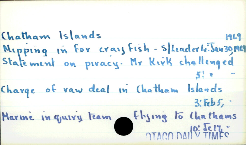 Dunedin Public Libraries (28th Mar 2019). Chatham Islands. In Website Dunedin Public Libraries. Retrieved 4th Apr 2026 15:07, from https://dunedin.recollect.co.nz/nodes/view/24650