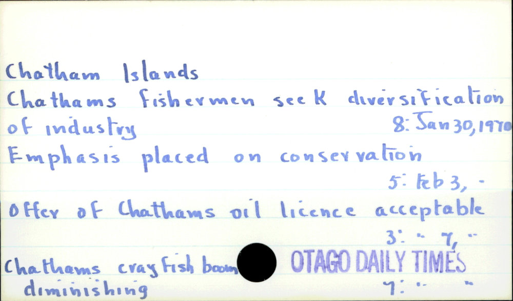 Dunedin Public Libraries (31st Mar 2019). Chatham Islands. In Website Dunedin Public Libraries. Retrieved 4th Apr 2026 15:06, from https://dunedin.recollect.co.nz/nodes/view/24652