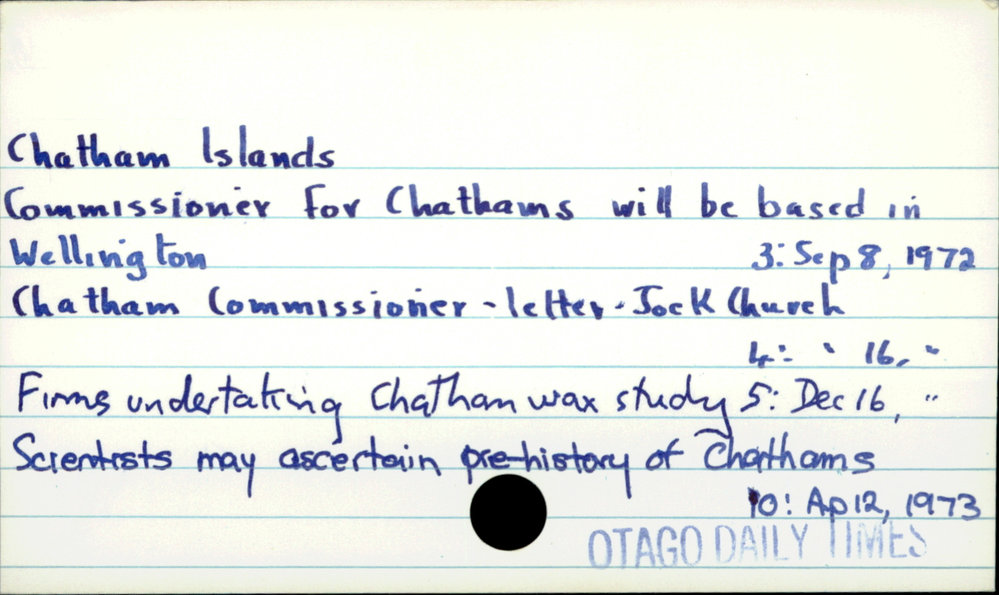 Dunedin Public Libraries (27th Mar 2019). Chatham Islands. In Website Dunedin Public Libraries. Retrieved 4th Apr 2026 15:06, from https://dunedin.recollect.co.nz/nodes/view/24657