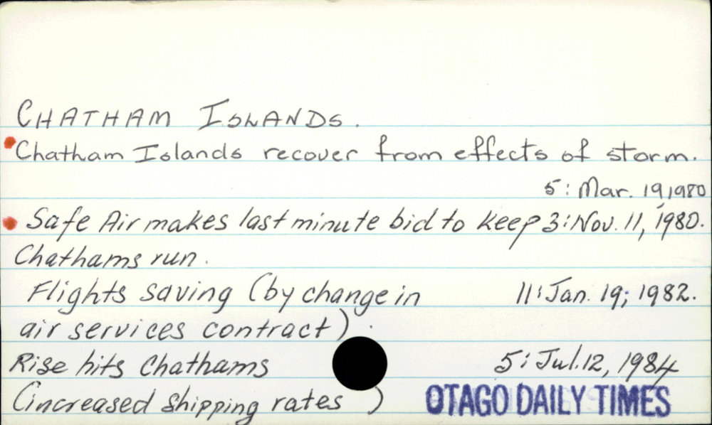 Dunedin Public Libraries (27th Mar 2019). CHATHAM ISLANDS. In Website Dunedin Public Libraries. Retrieved 4th Apr 2026 15:07, from https://dunedin.recollect.co.nz/nodes/view/24663