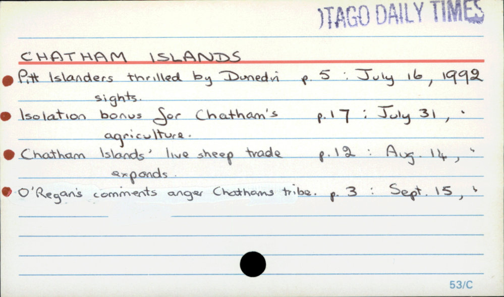 Dunedin Public Libraries (28th Mar 2019). CHATHAM ISLANDS. In Website Dunedin Public Libraries. Retrieved 4th Apr 2026 15:16, from https://dunedin.recollect.co.nz/nodes/view/24667