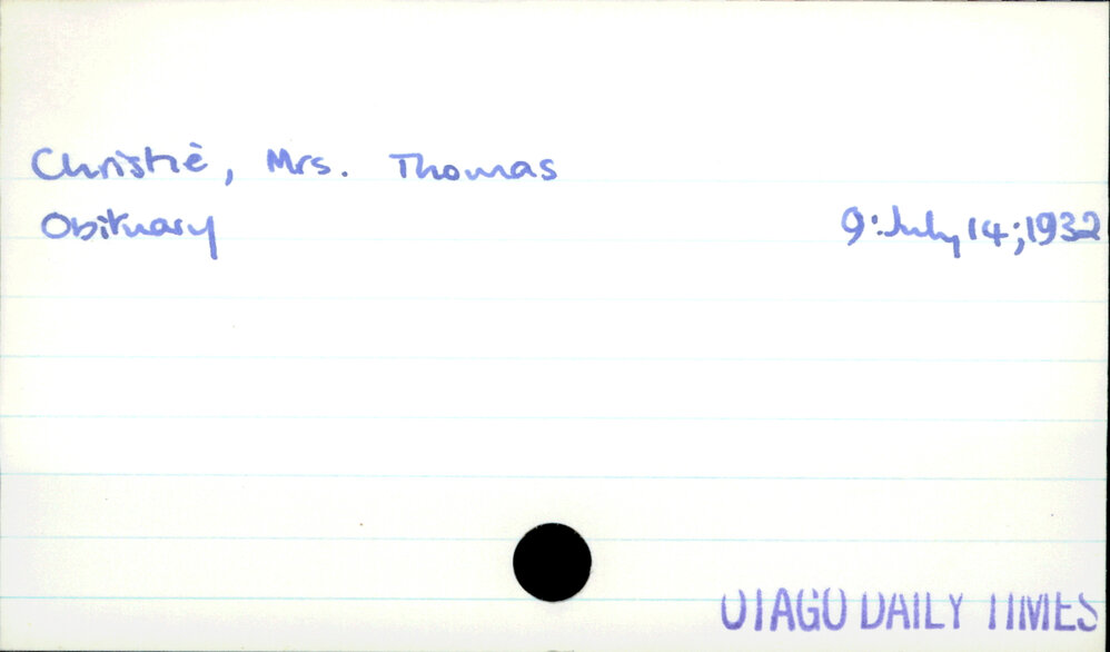 Dunedin Public Libraries (4th Apr 2019). Christie, Mrs. Thomas. In Website Dunedin Public Libraries. Retrieved 27th Mar 2026 18:12, from https://dunedin.recollect.co.nz/nodes/view/25628