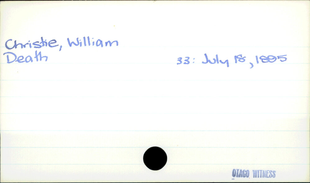 Dunedin Public Libraries (4th Apr 2019). Christie, William. In Website Dunedin Public Libraries. Retrieved 27th Mar 2026 18:12, from https://dunedin.recollect.co.nz/nodes/view/25637