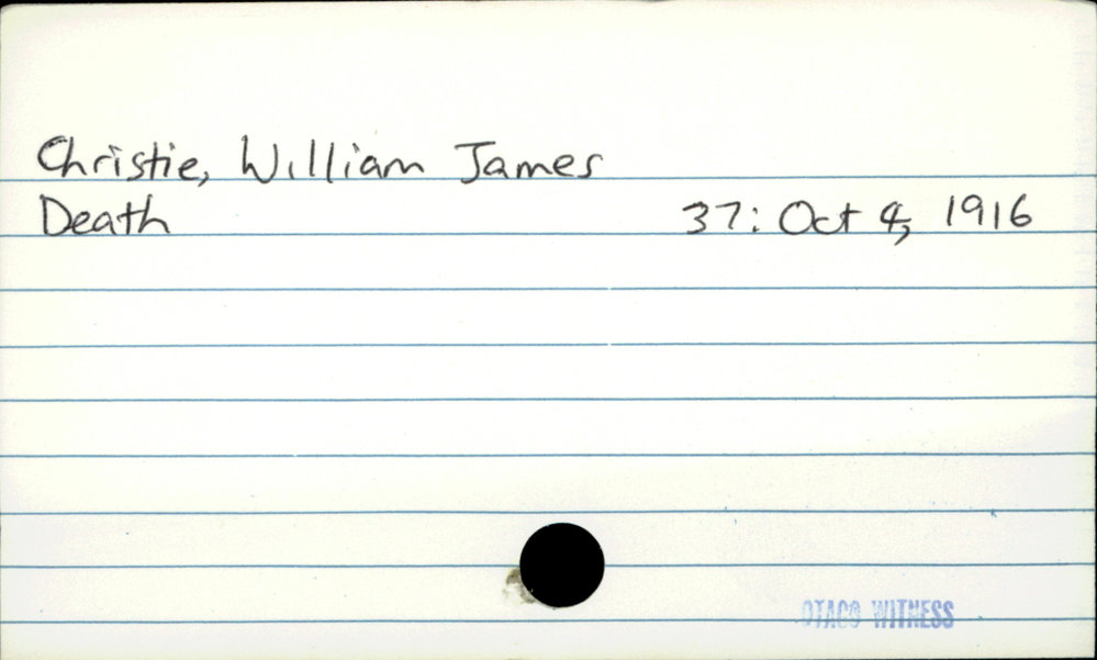 Dunedin Public Libraries (4th Apr 2019). Christie, William James. In Website Dunedin Public Libraries. Retrieved 27th Mar 2026 18:12, from https://dunedin.recollect.co.nz/nodes/view/25641