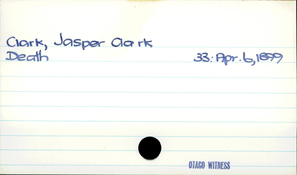 Dunedin Public Libraries (14th Apr 2019). Clark, Jasper Clark. In Website Dunedin Public Libraries. Retrieved 27th Mar 2026 14:16, from https://dunedin.recollect.co.nz/nodes/view/26492