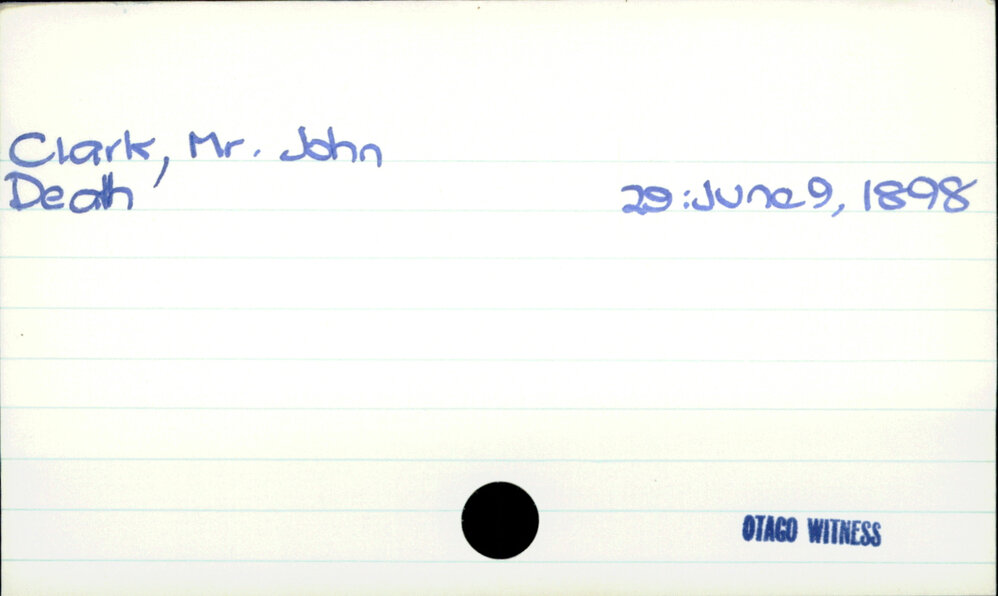 Dunedin Public Libraries (11th Apr 2019). Clark, Mr. John. In Website Dunedin Public Libraries. Retrieved 27th Mar 2026 14:16, from https://dunedin.recollect.co.nz/nodes/view/26497