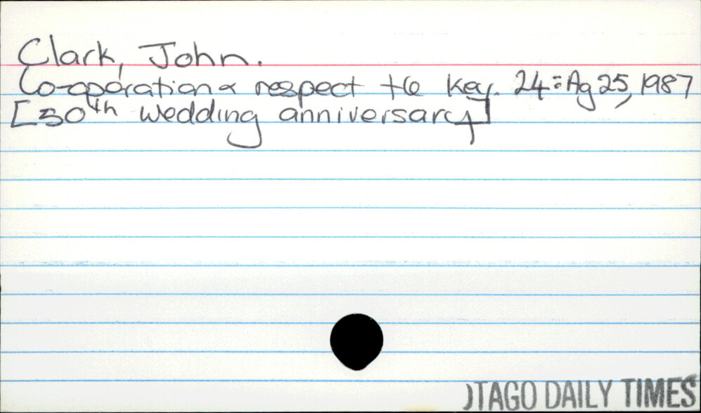 Dunedin Public Libraries (11th Apr 2019). Clark, John. In Website Dunedin Public Libraries. Retrieved 27th Mar 2026 14:15, from https://dunedin.recollect.co.nz/nodes/view/26499