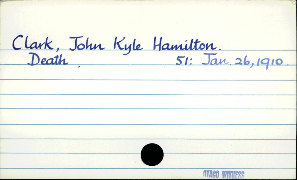 Dunedin Public Libraries (11th Apr 2019). Clark, John Kyle Hamilton. In Website Dunedin Public Libraries. Retrieved 27th Mar 2026 14:16, from https://dunedin.recollect.co.nz/nodes/view/26502