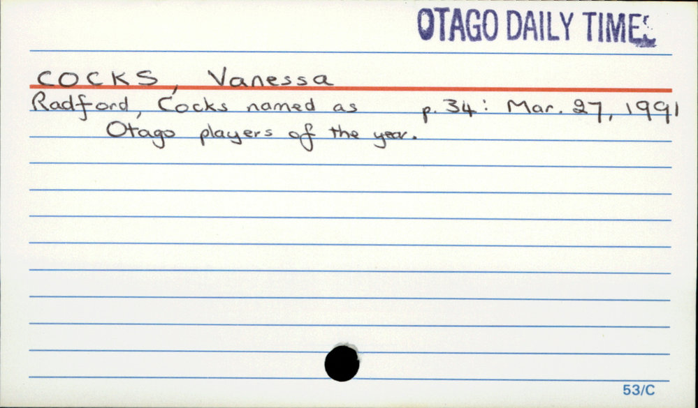 Dunedin Public Libraries (4th May 2019). COCKS, Vanessa. In Website Dunedin Public Libraries. Retrieved 2nd Apr 2026 17:45, from https://dunedin.recollect.co.nz/nodes/view/28230