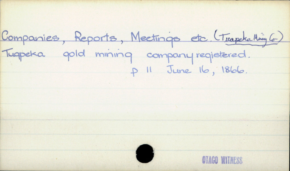 Dunedin Public Libraries (15th May 2019). Companies, Reports, Meetings etc (Tuapeka Mining Co). In Website Dunedin Public Libraries. Retrieved 2nd Apr 2026 21:40, from https://dunedin.recollect.co.nz/nodes/view/29158