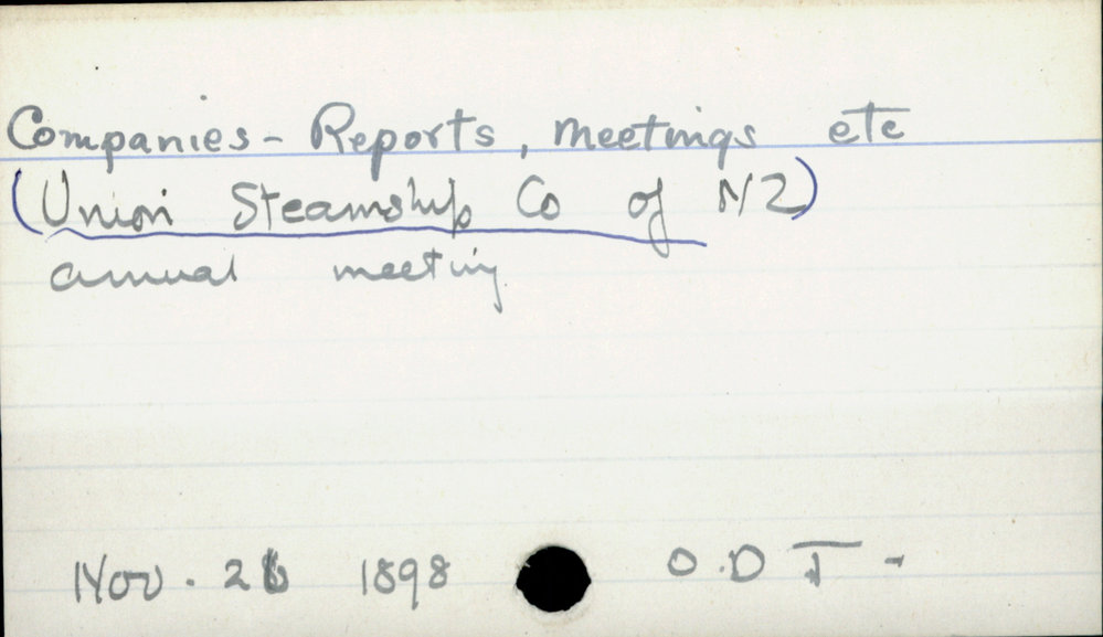 Dunedin Public Libraries (15th May 2019). Companies, - Reports, Meetings etc (Union Steamship Co of NZ). In Website Dunedin Public Libraries. Retrieved 2nd Apr 2026 21:41, from https://dunedin.recollect.co.nz/nodes/view/29160