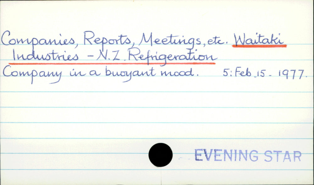 Dunedin Public Libraries (15th May 2019). Companies, Reports, Meetings, etc - Waitaki Industries - NZ Refrigeration. In Website Dunedin Public Libraries. Retrieved 2nd Apr 2026 21:50, from https://dunedin.recollect.co.nz/nodes/view/29170