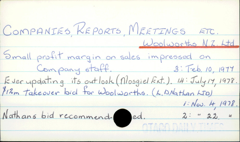 Dunedin Public Libraries (15th May 2019). COMPANIES, REPORTS, MEETINGS ETC. Woolworths N. Z. Ltd. In Website Dunedin Public Libraries. Retrieved 2nd Apr 2026 21:39, from https://dunedin.recollect.co.nz/nodes/view/29178