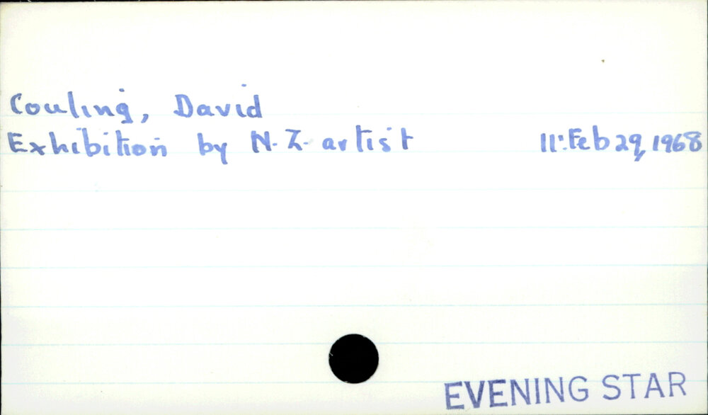 Dunedin Public Libraries (4th Jun 2019). Couling, David. In Website Dunedin Public Libraries. Retrieved 4th Apr 2026 04:49, from https://dunedin.recollect.co.nz/nodes/view/31041
