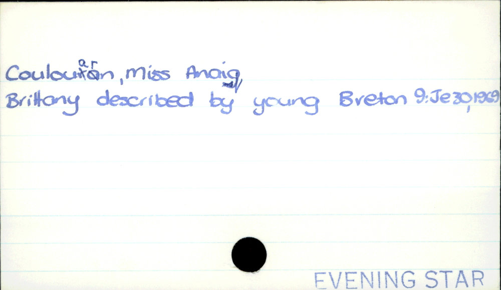 Dunedin Public Libraries (12th Jun 2019). Coulouarn, Anaig (Miss). In Website Dunedin Public Libraries. Retrieved 4th Apr 2026 04:44, from https://dunedin.recollect.co.nz/nodes/view/31050