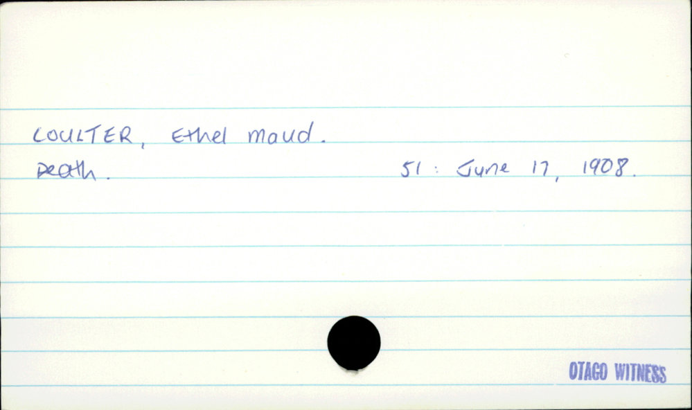 Dunedin Public Libraries (5th Jun 2019). COULTER, Ethel Maud. In Website Dunedin Public Libraries. Retrieved 4th Apr 2026 04:49, from https://dunedin.recollect.co.nz/nodes/view/31063