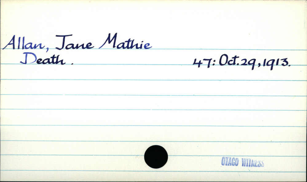 Dunedin Public Libraries (18th Jun 2018). Allan, Jane Mathie . In Website Dunedin Public Libraries. Retrieved 27th Mar 2026 14:15, from https://dunedin.recollect.co.nz/nodes/view/3597