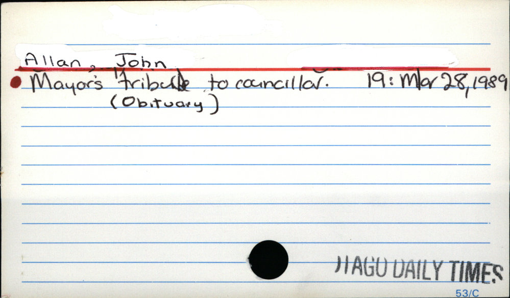 Dunedin Public Libraries (17th Jun 2018). Allan, John. In Website Dunedin Public Libraries. Retrieved 27th Mar 2026 14:16, from https://dunedin.recollect.co.nz/nodes/view/3612
