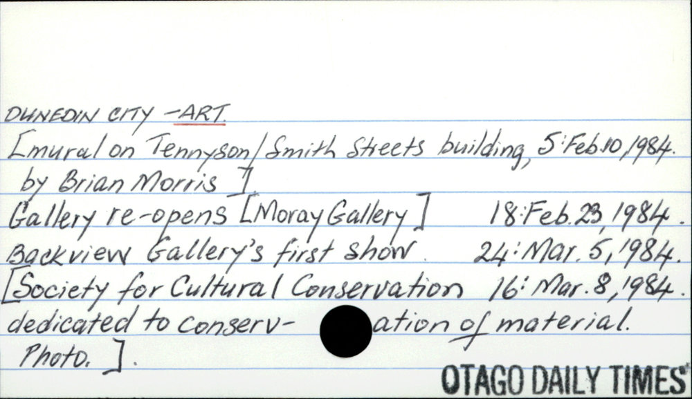 Dunedin Public Libraries (22nd Jun 2016). Dunedin City - Art. In Website Dunedin Public Libraries. Retrieved 1st May 2026 03:42, from https://dunedin.recollect.co.nz/nodes/view/36681