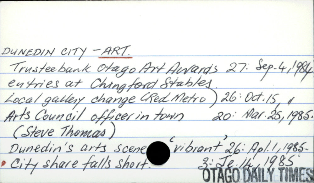 Dunedin Public Libraries (21st Jun 2016). Dunedin City- Art. In Website Dunedin Public Libraries. Retrieved 1st May 2026 03:42, from https://dunedin.recollect.co.nz/nodes/view/36684