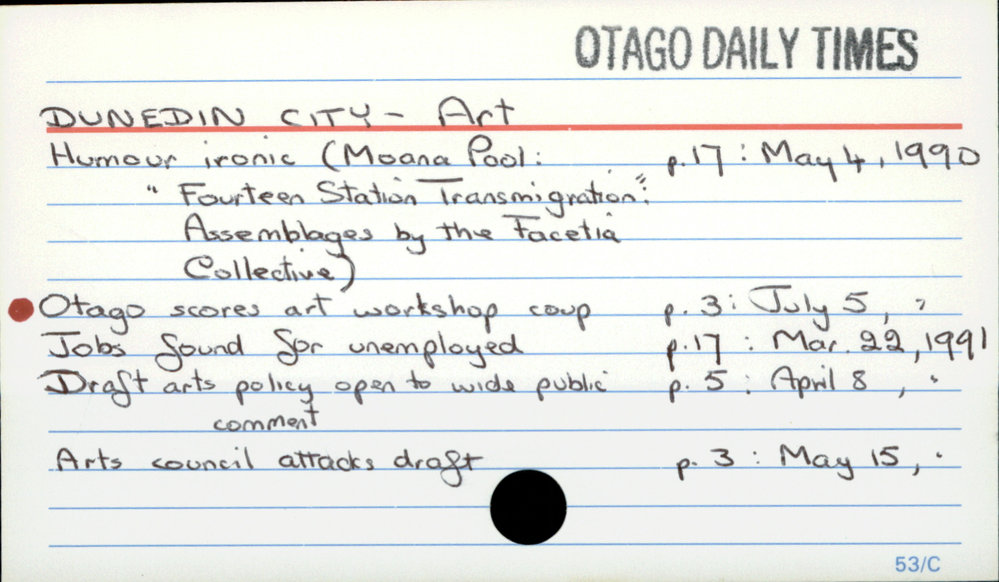 Dunedin Public Libraries (22nd Jun 2016). Dunedin City - Art. In Website Dunedin Public Libraries. Retrieved 1st May 2026 03:42, from https://dunedin.recollect.co.nz/nodes/view/36694