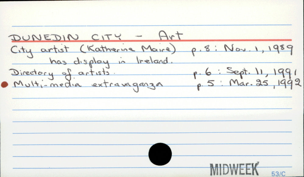 Dunedin Public Libraries (22nd Jun 2016). Dunedin City - Art. In Website Dunedin Public Libraries. Retrieved 1st May 2026 03:45, from https://dunedin.recollect.co.nz/nodes/view/36697