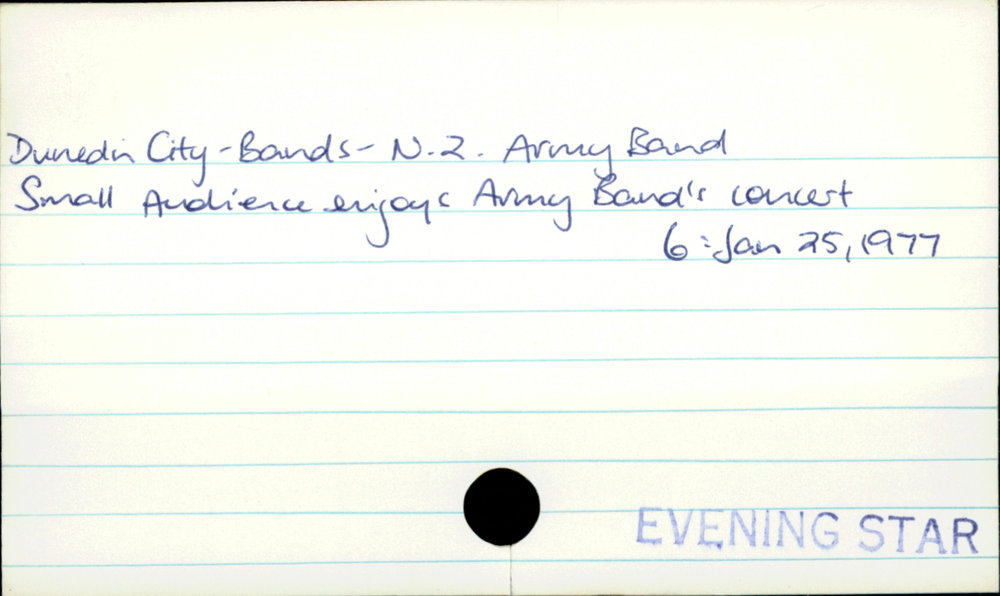 Dunedin Public Libraries (1st Aug 2016). Dunedin City - Bands - N.Z. Army Band. In Website Dunedin Public Libraries. Retrieved 6th Apr 2026 03:02, from https://dunedin.recollect.co.nz/nodes/view/37519