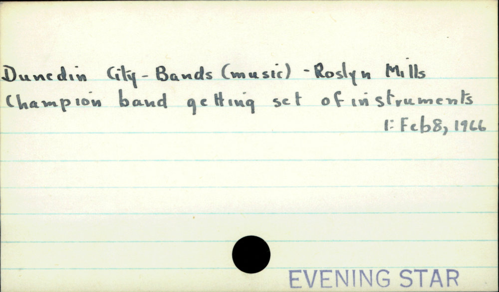 Dunedin Public Libraries (1st Aug 2016). Dunedin City - Bands (music) - Roslyn Mills. In Website Dunedin Public Libraries. Retrieved 5th Apr 2026 14:04, from https://dunedin.recollect.co.nz/nodes/view/37520