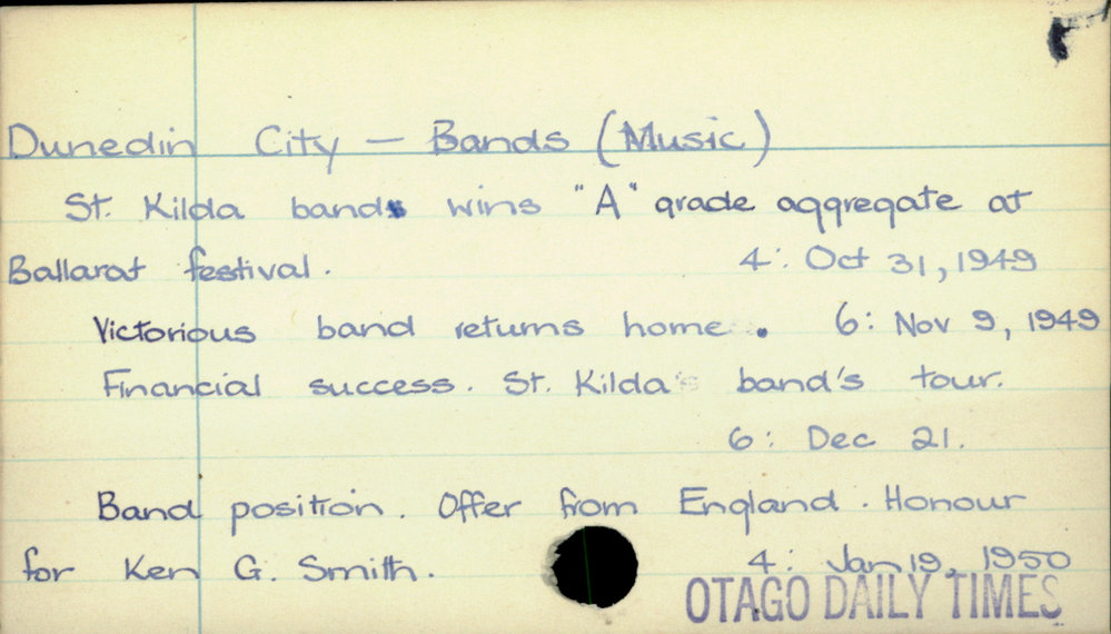 Dunedin Public Libraries (2nd Aug 2016). Dunedin City - Bands (Music). In Website Dunedin Public Libraries. Retrieved 6th Apr 2026 03:01, from https://dunedin.recollect.co.nz/nodes/view/37531