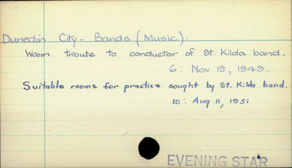 Dunedin Public Libraries (2nd Aug 2016). Dunedin City - Bands (Music).. In Website Dunedin Public Libraries. Retrieved 6th Apr 2026 03:00, from https://dunedin.recollect.co.nz/nodes/view/37532