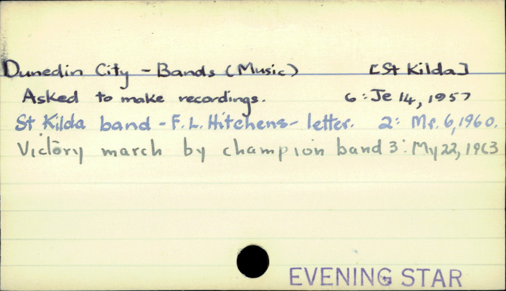 Dunedin Public Libraries (2nd Aug 2016). Dunedin City - Bands (Music) - [St Kilda]. In Website Dunedin Public Libraries. Retrieved 6th Apr 2026 03:00, from https://dunedin.recollect.co.nz/nodes/view/37537