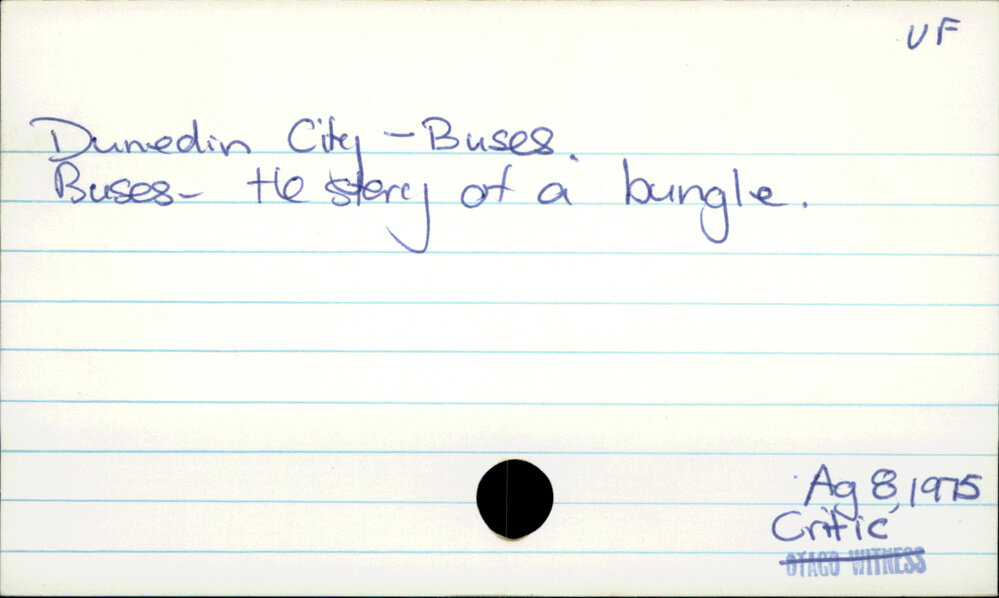 Dunedin Public Libraries (27th Sep 2016). Dunedin City - Buses .. In Website Dunedin Public Libraries. Retrieved 2nd Apr 2026 15:48, from https://dunedin.recollect.co.nz/nodes/view/39654
