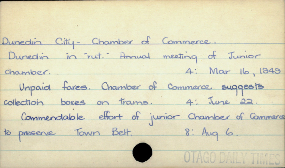 Dunedin Public Libraries (14th Oct 2016). Dunedin City- Chamber of Commerce.. In Website Dunedin Public Libraries. Retrieved 2nd Apr 2026 17:45, from https://dunedin.recollect.co.nz/nodes/view/40301