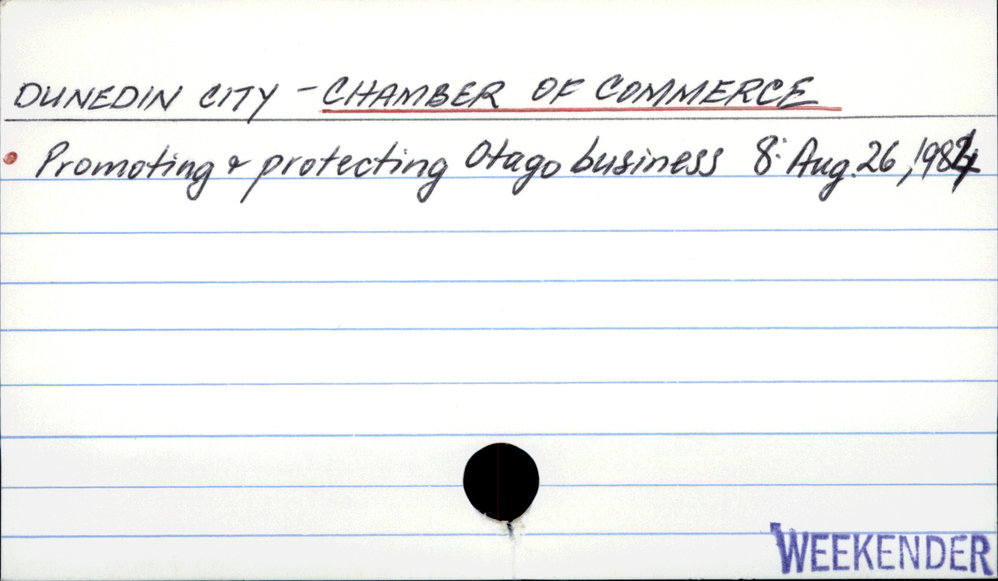 Dunedin Public Libraries (14th Oct 2016). DUNEDIN CITY - CHAMBER OF COMMERCE. In Website Dunedin Public Libraries. Retrieved 2nd Apr 2026 17:45, from https://dunedin.recollect.co.nz/nodes/view/40309