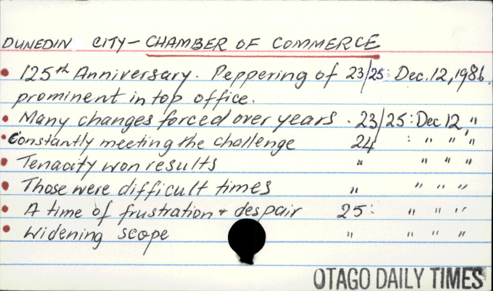 Dunedin Public Libraries (14th Oct 2016). DUNEDIN CITY - CHAMBER OF COMMERCE. In Website Dunedin Public Libraries. Retrieved 2nd Apr 2026 17:45, from https://dunedin.recollect.co.nz/nodes/view/40310