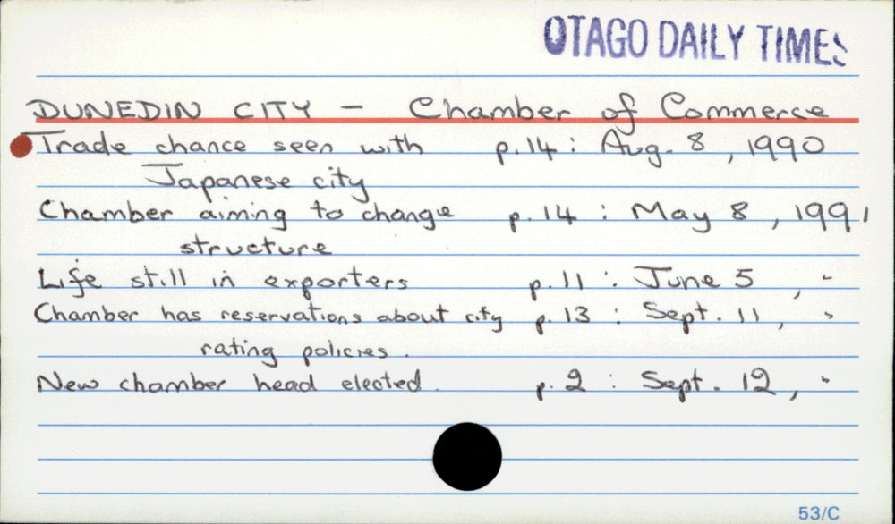 Dunedin Public Libraries (14th Oct 2016). DUNEDIN CITY - Chamber of Commerce. In Website Dunedin Public Libraries. Retrieved 2nd Apr 2026 17:56, from https://dunedin.recollect.co.nz/nodes/view/40311