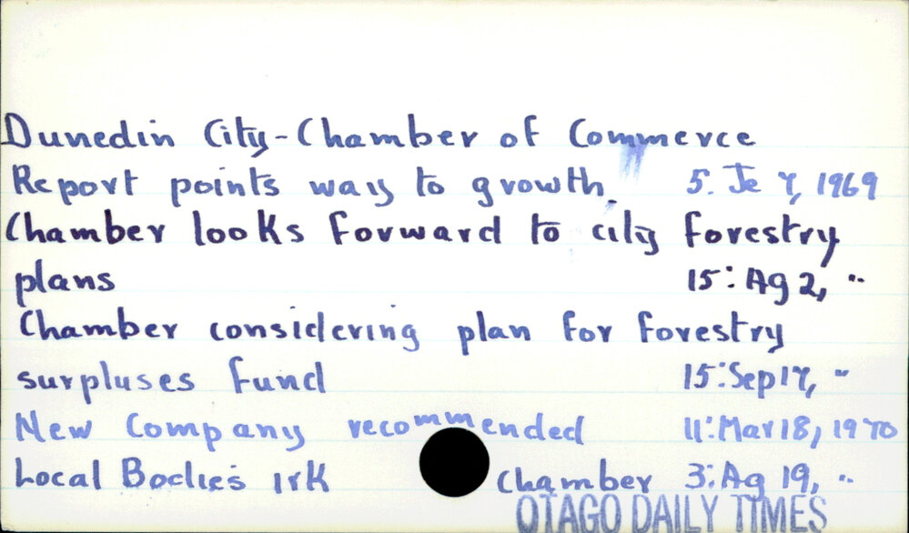 Dunedin Public Libraries (14th Oct 2016). Dunedin City - Chamber of Commerce. In Website Dunedin Public Libraries. Retrieved 2nd Apr 2026 17:56, from https://dunedin.recollect.co.nz/nodes/view/40318