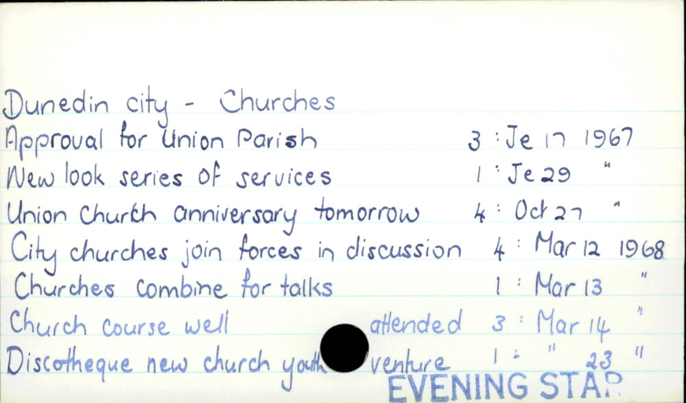 Dunedin Public Libraries (20th Oct 2016). Dunedin City - Churches. In Website Dunedin Public Libraries. Retrieved 2nd Apr 2026 21:41, from https://dunedin.recollect.co.nz/nodes/view/41145