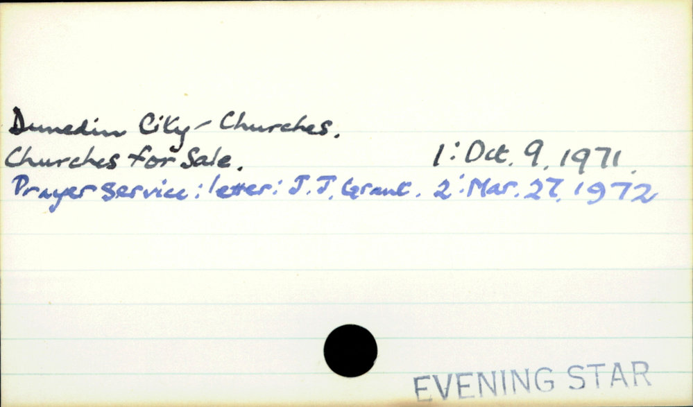 Dunedin Public Libraries (20th Oct 2016). Dunedin City - Churches.. In Website Dunedin Public Libraries. Retrieved 2nd Apr 2026 21:41, from https://dunedin.recollect.co.nz/nodes/view/41152